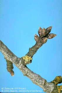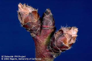 The bloom period contains several important periods of pest and disease management which can be found at http://ucipm.ucdavis.edu/PMG/C003/m003bcwhybloom.html. Poor pest management practices during this period can lead to a substantial crop loss, loss of fruiting wood, and fungal problems that may persist for several years. Of major concern include the blossom diseases of brown rot, scab, anthracnose, and jacket rot, the insect peach twig borer (Picture 8 and 9) and completion of sanitation practices for navel orange worm.