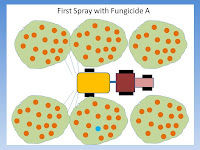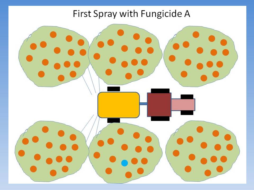 Figure 1: Application of a fungicideto control a foliar pathogen. The bluedot represents a resistant fungalcolony to fungicide A. |