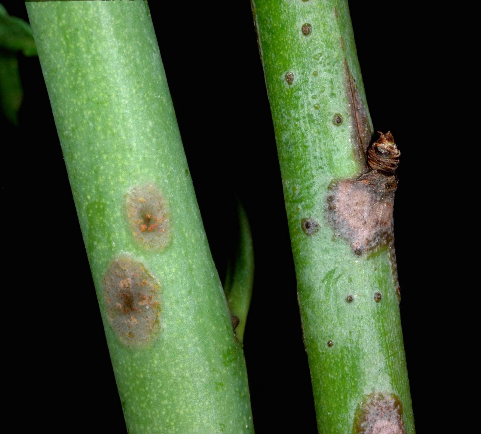| Scab lesions found on almond twigs. |