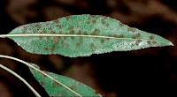 | Symptoms of scab observed on thetop-side of almond leaves. |
